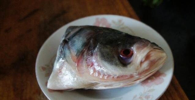 2、鲢鱼头去腮,撕去里边的黑膜洗净。