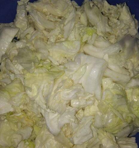 准备好食材,将白菜去绑留叶,切成块状用清水多洗几遍,备好细粉。