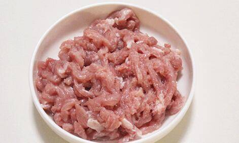 锅中加入适量的油,油热后,将肉丝放入锅中。煸炒至肉丝发白即可盛出备用。