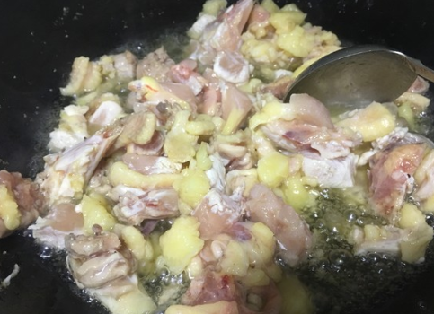 准备鸡肉,剁块、一碗干辣椒、花椒粒。