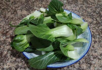 主料:上海青500克。辅料:盐2克、油2克、蒜1克。