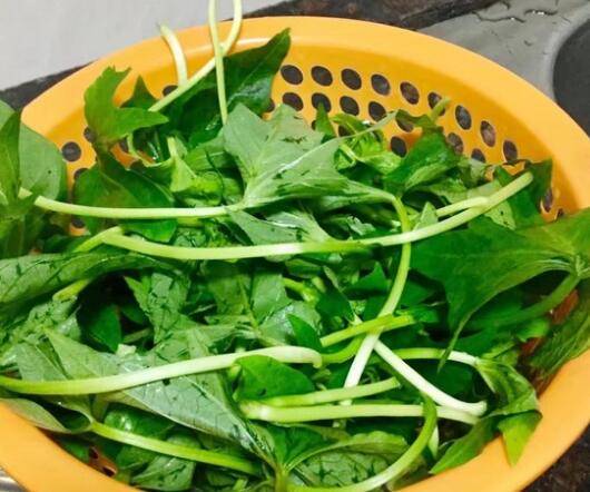 薯苗洗净,蒜子剁成蒜末;