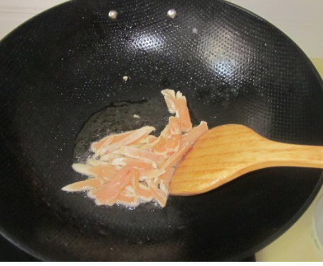 倒少许油炒白鸡肉;