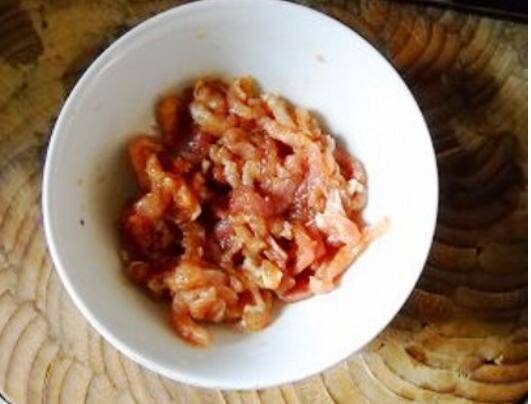 准备食材:水芹、猪肉150克、油15克、盐1克、淀粉4克、生抽3克、自制红剁椒10克。