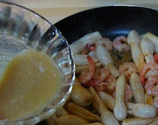 准备芡汁(适量的调味鸡汁、生粉、砂糖和清水拌匀)。