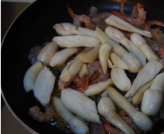 最佳答案食材:鸡腿菇和基围虾。基围虾择洗干净,剥壳留尾,放入碗中,加入适量的食盐腌制一下。准备芡汁(适量的调味鸡汁、生粉、砂糖和清水拌匀)。鸡腿菇择洗干净,切半。焯烫一下。热油锅。放入基围虾,煸炒一下。放入鸡腿菇。倒入芡汁,煸炒至食材断生即可。