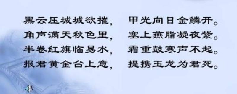 黑云压城城欲摧下一句是甲光向日金鳞开。出自唐代李贺的《雁门太守行》。