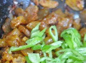 放入尖椒断生。