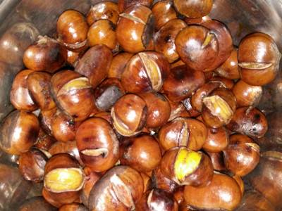3、高压锅去阀,倒少许食用油、白砂糖、栗子,开中小火翻炒二十分钟,待闻到栗子皮的糊味即可取出食用。