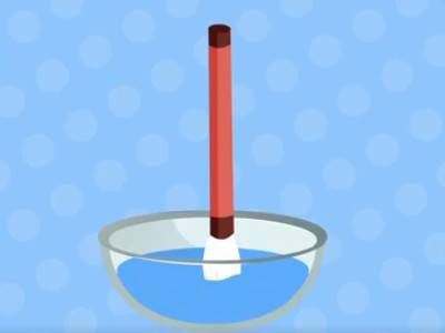3、将笔头部分浸入水中,泡的时候不可让笔尖弯曲。