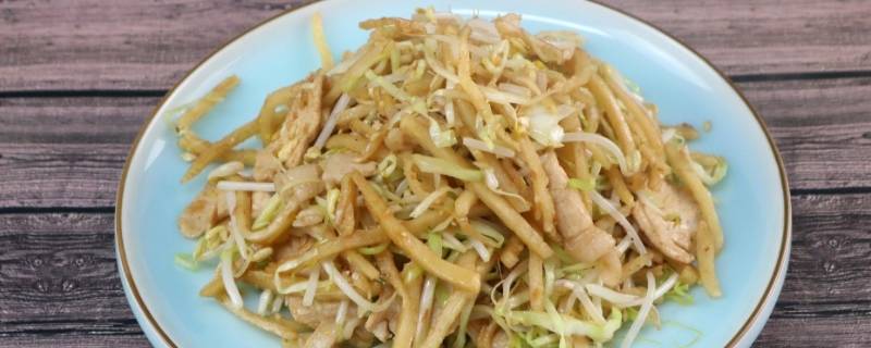 最佳答案用料:饼丝500克、洋葱1个、胡萝卜半个、青椒半个、绿豆芽200克、盐适量、葱蒜适量、生抽2勺、食用油适量。1、胡萝卜切丝,洋葱洗净切丝,青椒切丝,姜末、蒜片。2、绿豆芽洗净控水。3、炒锅烧热倒油,放洋葱炒出香味,放胡萝卜丝煸炒均匀。4、放绿豆芽继续翻炒,加适量盐炒匀。5、放入饼丝,用筷子...