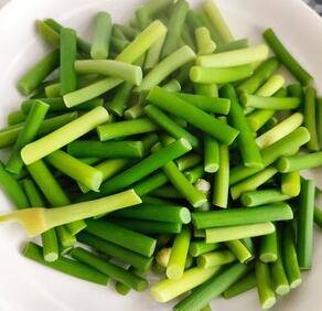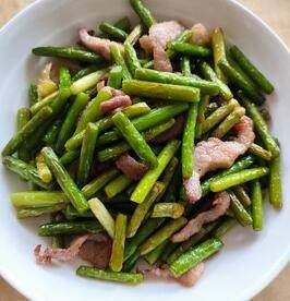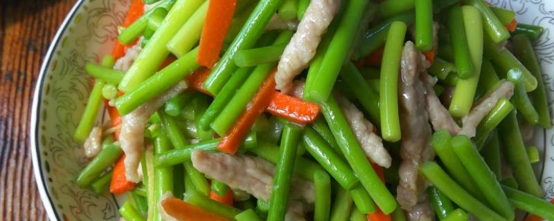用料:蒜毫适量、盐、瘦肉适量。
