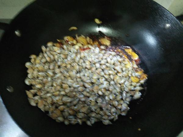 6、放海螺丝炒匀。