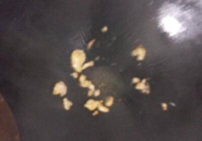 4、之前割下的鸡油倒入锅内熬干,去掉油渣。