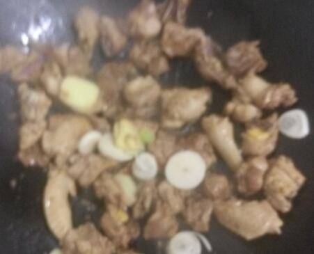 用料:鸡半只、姜一块、蒜两根、香菜少许、干辣椒一把、料酒适量、酱油适量、盐适量。