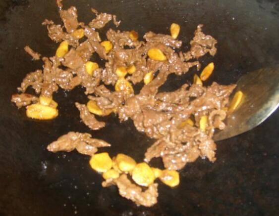 倒进牛肉大火快炒3分钟,然后放进盐和酱油调味即可。
