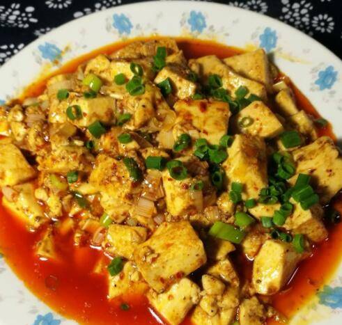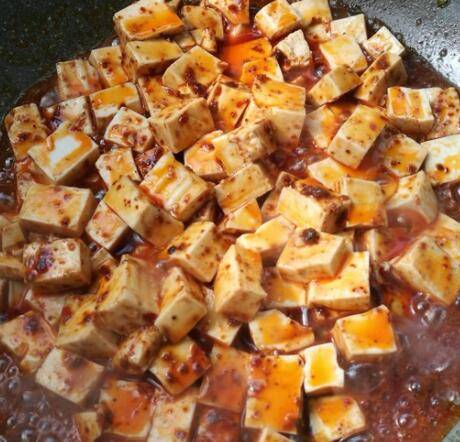 用料:嫩豆腐200克、麻婆豆腐调料100克、盐少许。