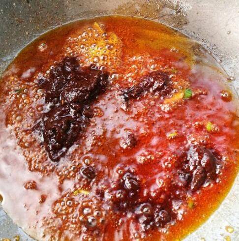 2、锅中烧油,将麻婆豆腐调料放进去翻炒。