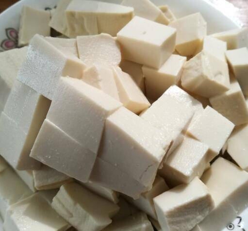 1、豆腐冲干净,切小块,装盘待用。