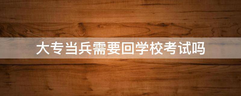 大专当兵不需要回学校考试。专科学校学生参军后不需要考试,学校会保留学籍,军队复员之后继续上学,继续参加学业考试,最后拿到毕业证书。专科,大学专科的简称,是高等学历教育的基本组成部分,一般招收高中毕业生或具有同等学历者,修业年限多数为三年(非全日制大学专科学历教育的修业年限视情况而定)。专科学历主要分为全日制专科和非全日制专科两种。全日制专科通常是由普通高等学校招生全国统一考试录取,全日在校学习。