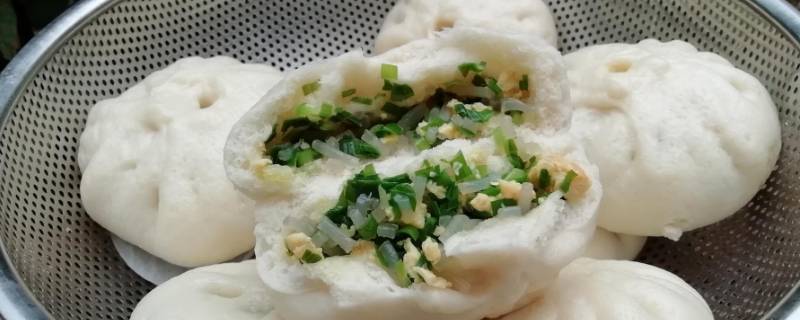 三、韭菜鸡蛋素馅包子。准备食材:韭菜1000克、鸡蛋5个、虾皮一大把、精盐适量、食用油适量。