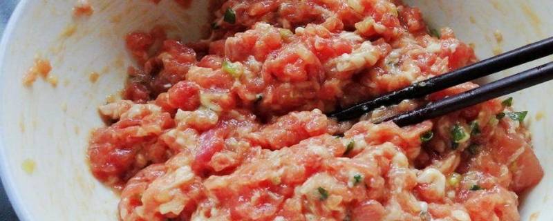 3、用绞肉机将葱花、姜、肉搅碎准备好。