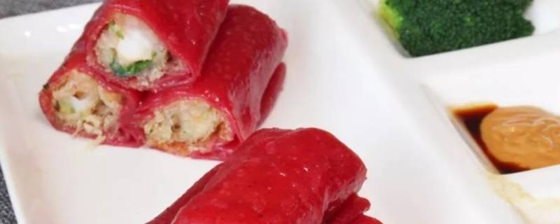 红米肠是用粘米粉、木薯淀粉、红曲粉、虾、面包糠和水做的。红米肠是广东早茶的一种,将粘米粉、木薯淀粉、红曲粉、水混合均匀,制成肠皮蒸熟,包入虾和面包糠而成。
