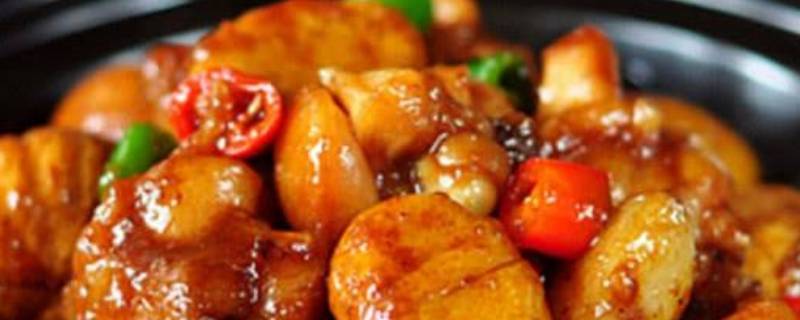 6、接着加板栗,翻炒均匀,炖煮到板栗软糯即可。