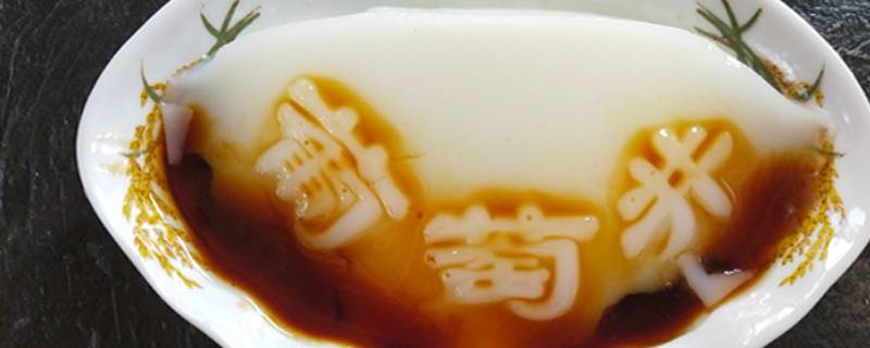 1、葡萄井凉糕:选用饱满的贵潮米,除去杂质,用葡萄井的新鲜水洗米,浸泡米10小时以上,用石磨磨米浆,再掌握好火候在锅里熬,熬的时候不停地搅动和加入使米浆凝固的东西。米浆熟后,马上舀在土碗中,冷却后,放在流动的葡萄井水中浸泡4小时以上即可。