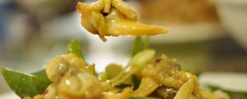 3、黄蚬炒米叉子:以米叉子为主料,以黄蚬子肉、韭黄、胡萝卜、元葱等为辅料,加蒜沫、香油等调料,煸炒而成。色泽金黄,口感滑嫩筋道,味道鲜美干香。