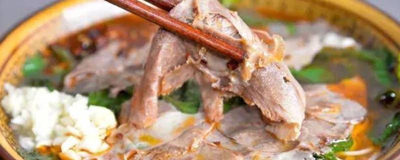 3、羊肉粉:先将米粉在开水锅里烫三次,除去米粉本身的酸味,盛在瓷碗中,然后在米粉上放一层薄薄的羊肉片,最后浇上鲜红的辣椒油,撒一些花椒粉、蒜苗、香葱、芜荽等香料即可。