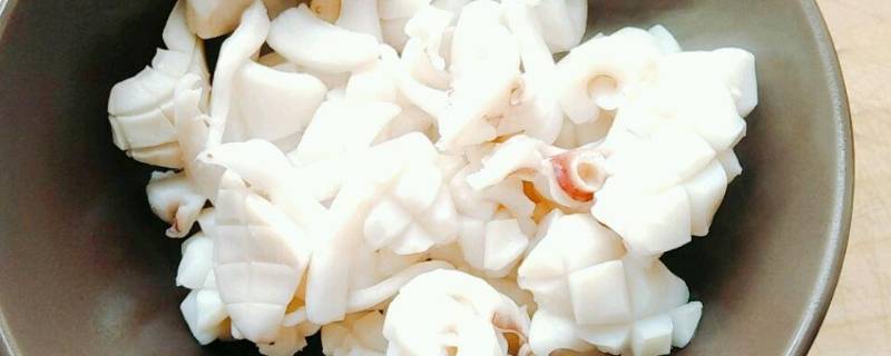 锅中烧开水,倒入鱿鱼片,3-5秒后鱿鱼卷起来了马上捞出。