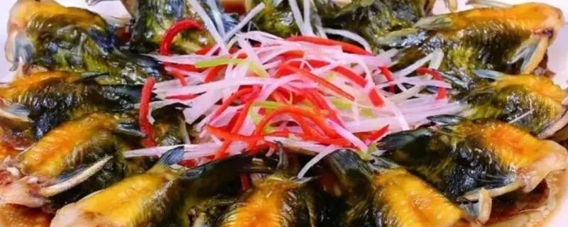 鱼背开深刀,两面划刀,淋入料酒、植物油、摆上葱段姜片。