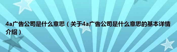 4a广告公司是什么意思(关于4a广告公司是什么意思的基本详情介绍)