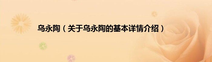 本文关于乌永陶的基本详情介绍就讲解完毕,希望对大家有所帮助。