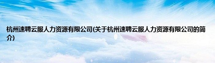 本文关于杭州速聘云服人力资源有限公司的简介就讲解完毕,希望对大家有所帮助。