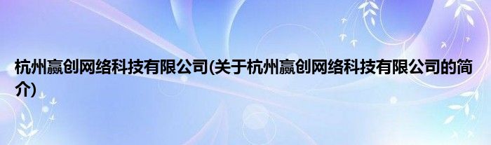 本文关于杭州赢创网络科技有限公司的简介就讲解完毕,希望对大家有所帮助。