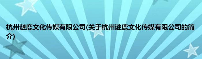 本文关于杭州谜鹿文化传媒有限公司的简介就讲解完毕,希望对大家有所帮助。