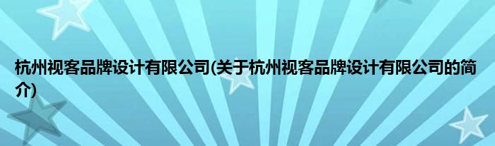 大家好,杭州视客品牌设计有限公司,关于杭州视客品牌设计有限公司的简介很多人还不知道,现在让我们一起来看看吧!