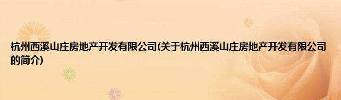 大家好,杭州西溪山庄房地产开发有限公司,关于杭州西溪山庄房地产开发有限公司的简介很多人还不知道,现在让我们一起来看看吧!