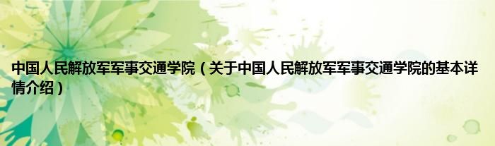 本文关于中国人民解放军军事交通学院的基本详情介绍就讲解完毕,希望对大家有所帮助。