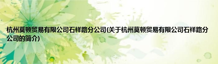 本文关于杭州莫顿贸易有限公司石祥路分公司的简介就讲解完毕,希望对大家有所帮助。