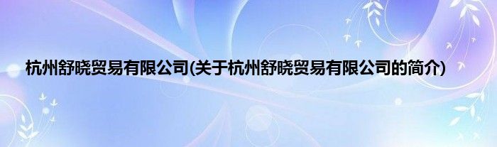 本文关于杭州舒晓贸易有限公司的简介就讲解完毕,希望对大家有所帮助。