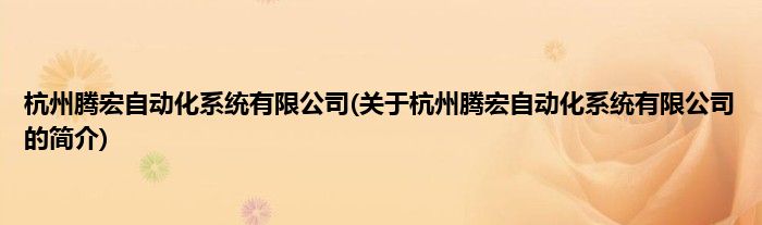本文关于杭州腾宏自动化系统有限公司的简介就讲解完毕,希望对大家有所帮助。