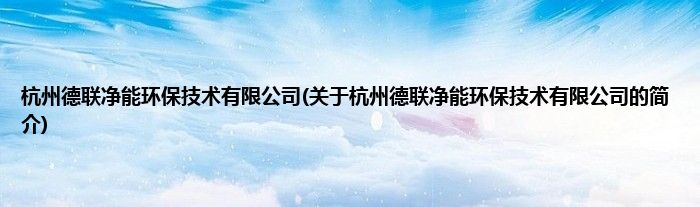 本文关于杭州德联净能环保技术有限公司的简介就讲解完毕,希望对大家有所帮助。