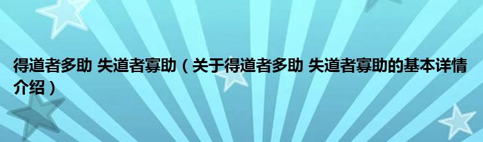 本文关于得道者多助 失道者寡助的基本详情介绍就讲解完毕,希望对大家有所帮助。