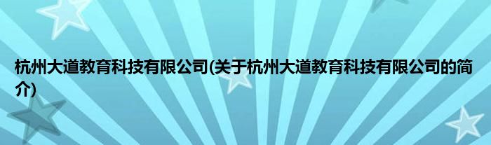 本文关于杭州大道教育科技有限公司的简介就讲解完毕,希望对大家有所帮助。