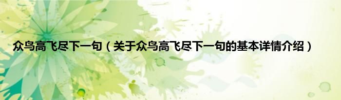本文关于众鸟高飞尽下一句的基本详情介绍就讲解完毕,希望对大家有所帮助。