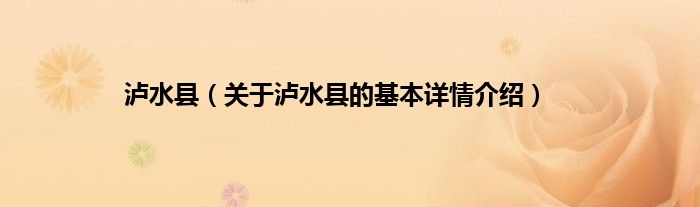 本文关于泸水县的基本详情介绍就讲解完毕,希望对大家有所帮助。
