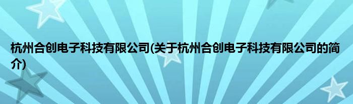 本文关于杭州合创电子科技有限公司的简介就讲解完毕,希望对大家有所帮助。